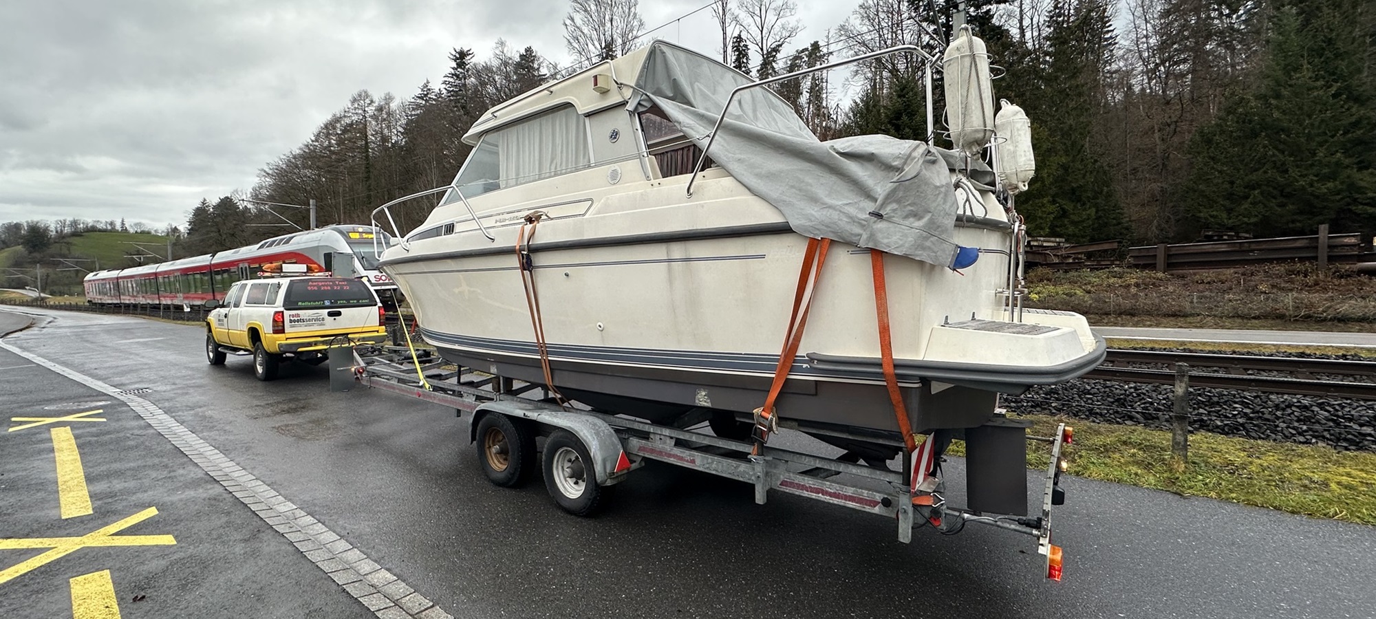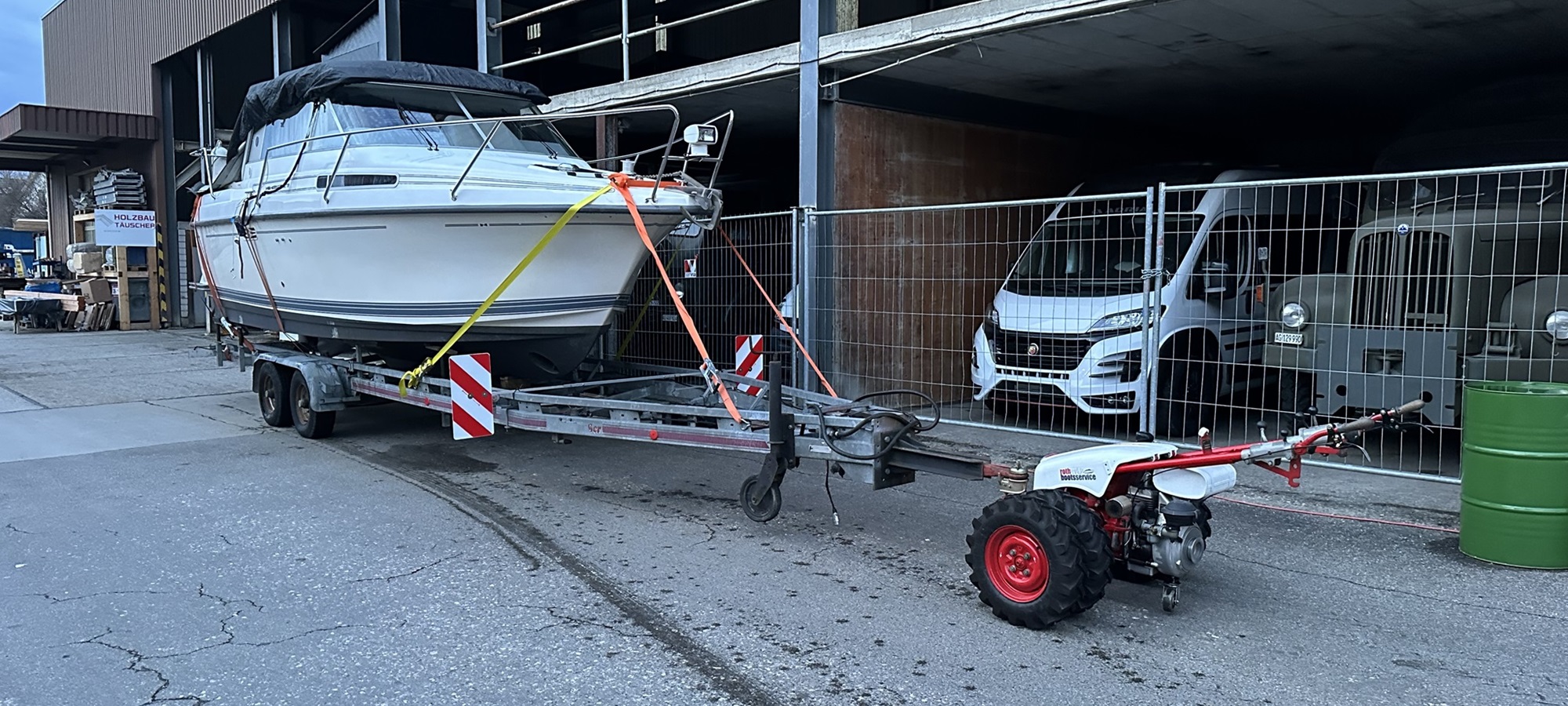 Wir transportieren mit Ihren Trailer oder mit unserem eigenem Trailer Ihr Boot bis maximal 3000 Kg. 3 Meter Breite, und 9 Meter Länge.
